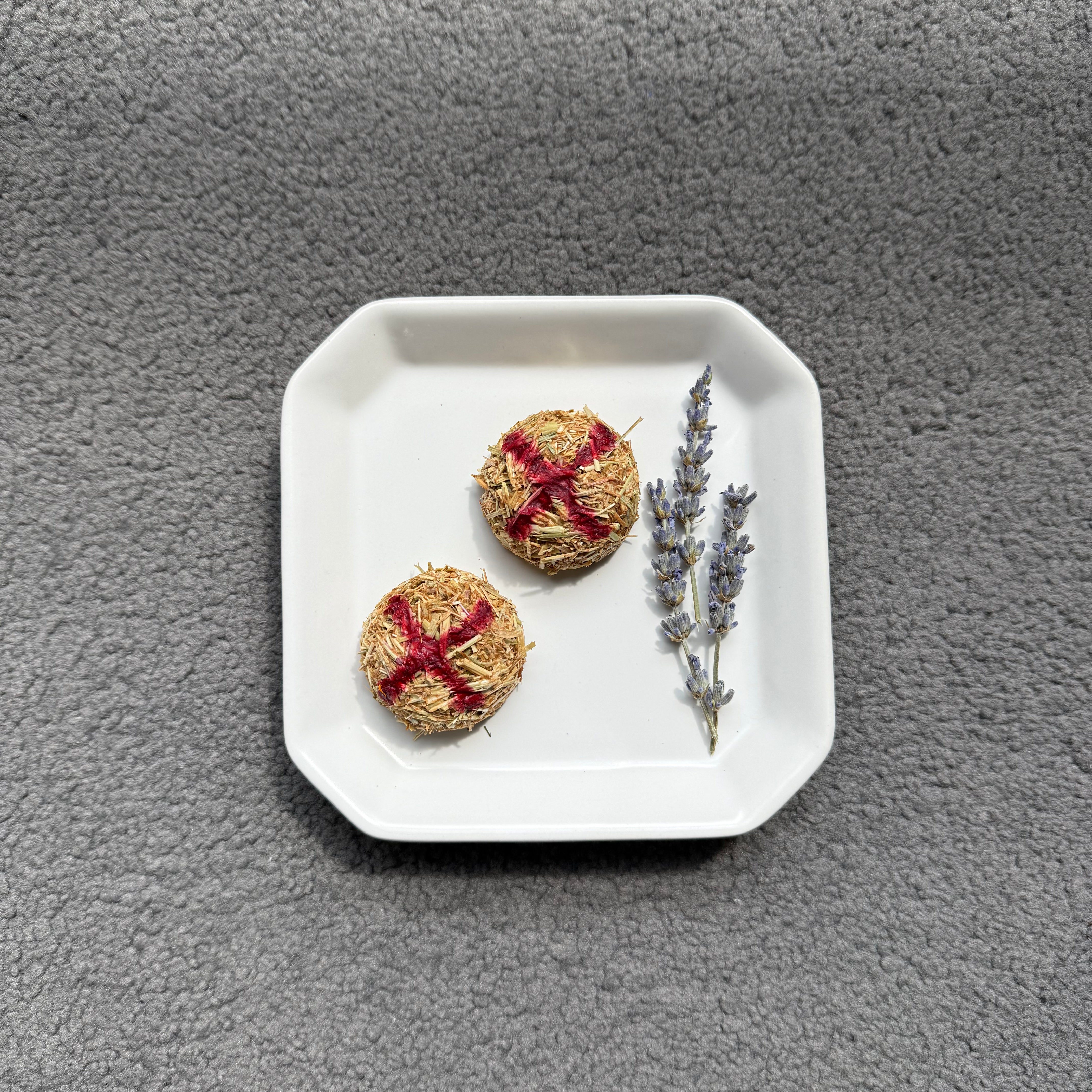 At our shop, we believe in offering only the best for your furry friends! Our treats are made from oaten hay and timothy hay, with just fruits and herbs – nothing else! 🌱